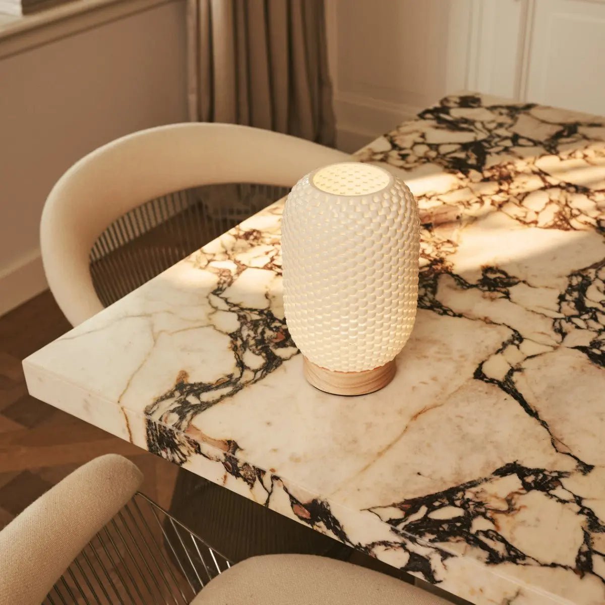 Das bei hohen Temperaturen gebrannte Porzellan erzeugt ein weiches, warmes Licht, das Ihrem Zuhause Eleganz und Ruhe verleiht – perfekt für Wohnzimmer, Schlafzimmer oder Arbeitsbereiche.