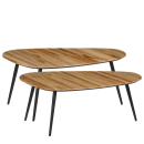 Das Jailey Beistelltisch-Set von Mica Decorations besticht durch seine natürliche Holzoptik, die organischen Formen und die hochwertige Verarbeitung. Die Tischplatten aus Holz mit sichtbarer Maserung verleihen jedem Stück einen individuellen Charakter, während die schwarzen Metallbeine einen modernen, stilvollen Kontrast schaffen.