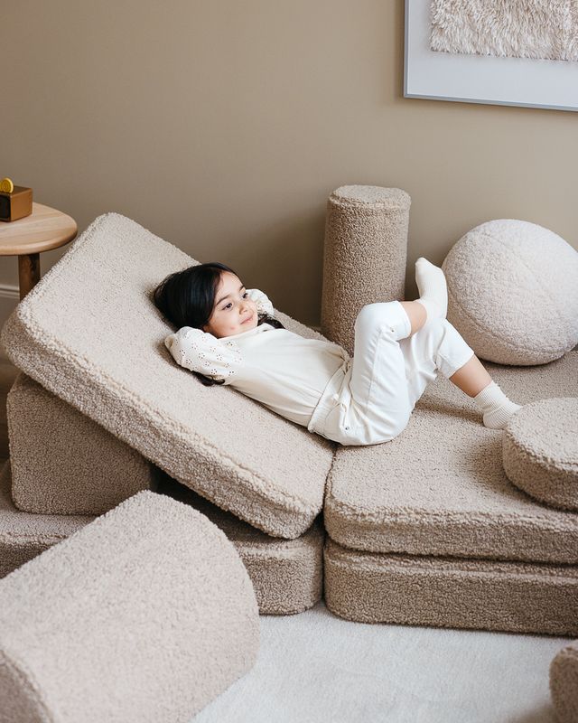 Das Wigiwama Spielsofa in Braun (Sandton) ist ein vielseitiges, 9-teiliges Modulsystem-Sofa für Kinder ab 3 Jahren. Es lädt zum kreativen Spielen, Lesen und Entspannen ein und lässt sich flexibel arrangieren – ob als Sofa, Burg, Fahrzeug oder gemütliches Versteck. Ein Möbelstück, das Fantasie und Komfort harmonisch verbindet.