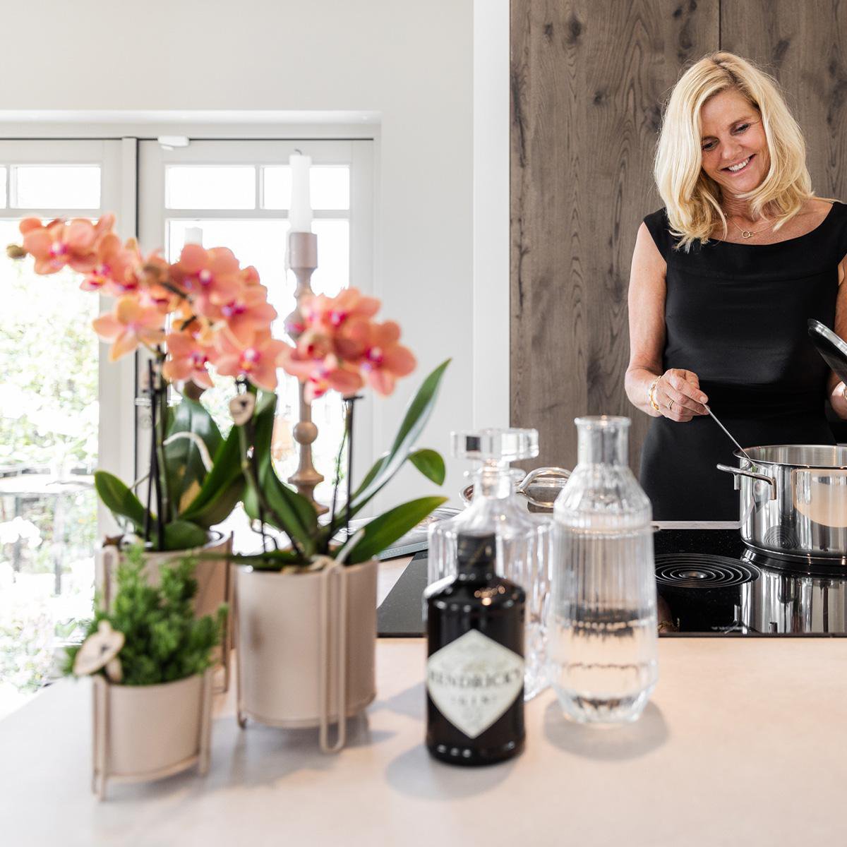 Nicht eins, sondern zwei Orchideen! Bereichen Ihr Haus mit zwei schönen Mineralorchideen an. Dieser leuchtend orangefarbene Bolzano ist eine wahre Schönheit in jedem Innenraum. Der Bolzano hat eine Topfgröße von 9 cm und 2 oder 3 robuste Zweige. Die Orchideen können gut mit Terrakotta -geläuteten oder sandgetränkten dekorativen Töpfen kombiniert werden.