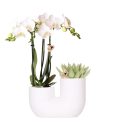 Kolibri-Orchideen | Set aus weißer Orchidee Amabilis und Sukkulente im Tube Dekotopf weiß – Topfgröße Ø9cm | blühende Zimmerpflanze – frisch vom Züchter