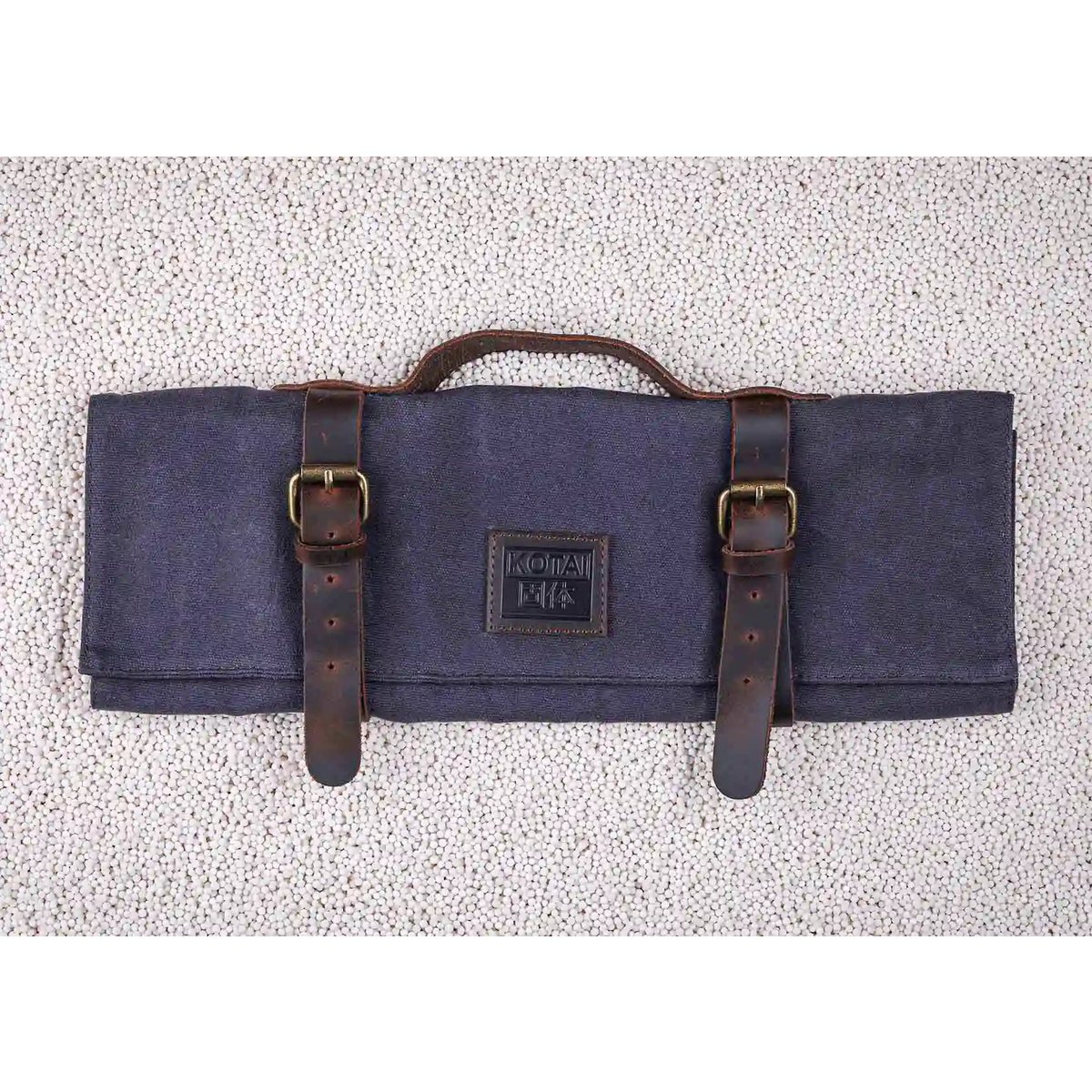 Küchenzubehör – KOTAI Messer Rolltasche – Top-Grain-Leder und gewachstes Segeltuch (kann 8 Messer + Zubehör aufnehmen)