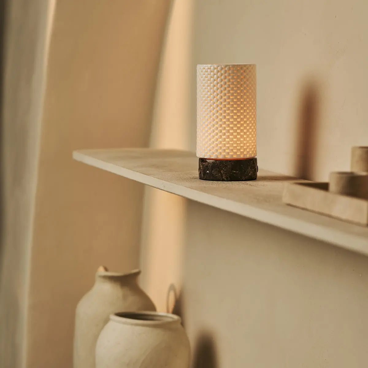Tavellio | Designer-Tischlampe Luna – 3D-gedrucktes Porzellan, kabellos & dimmbar
