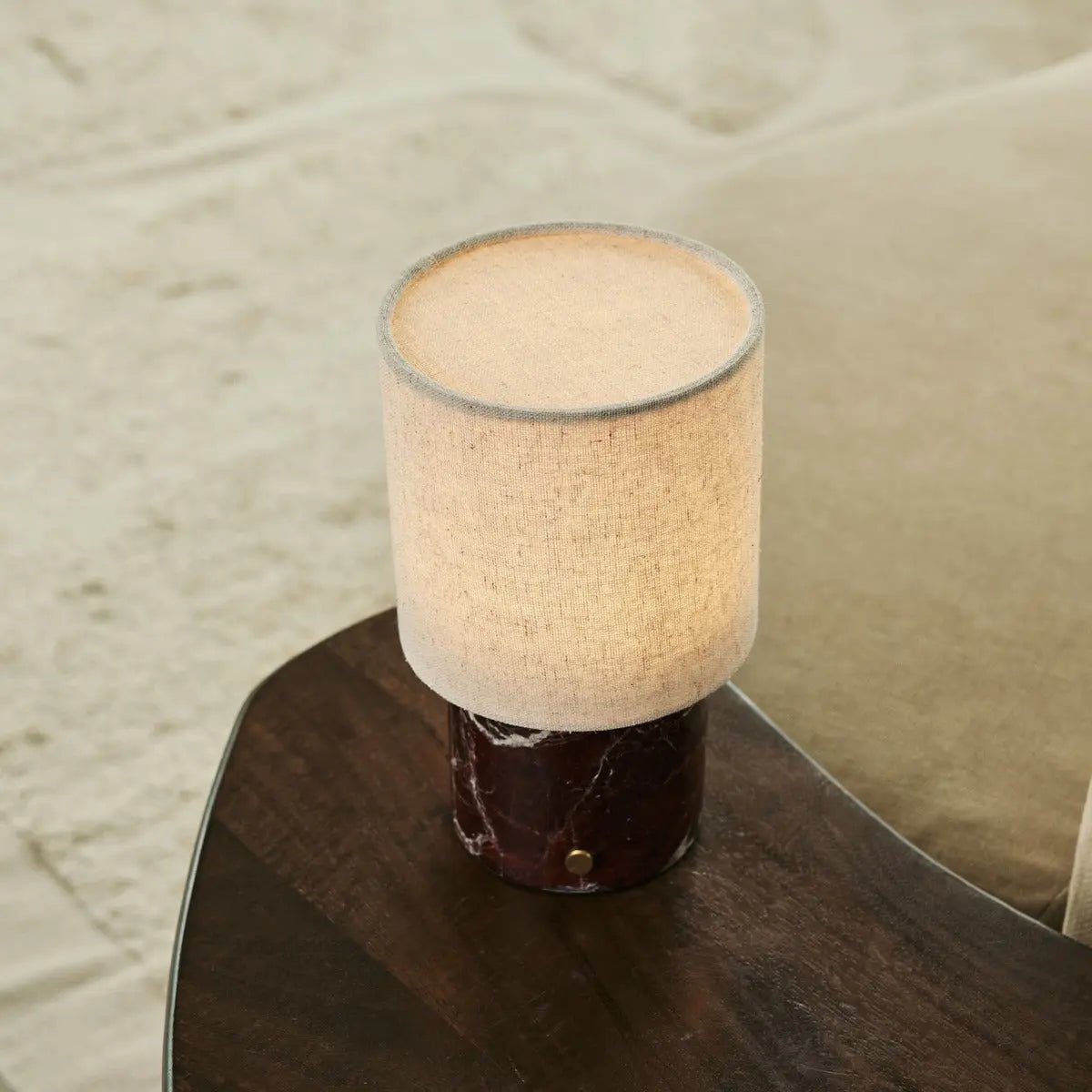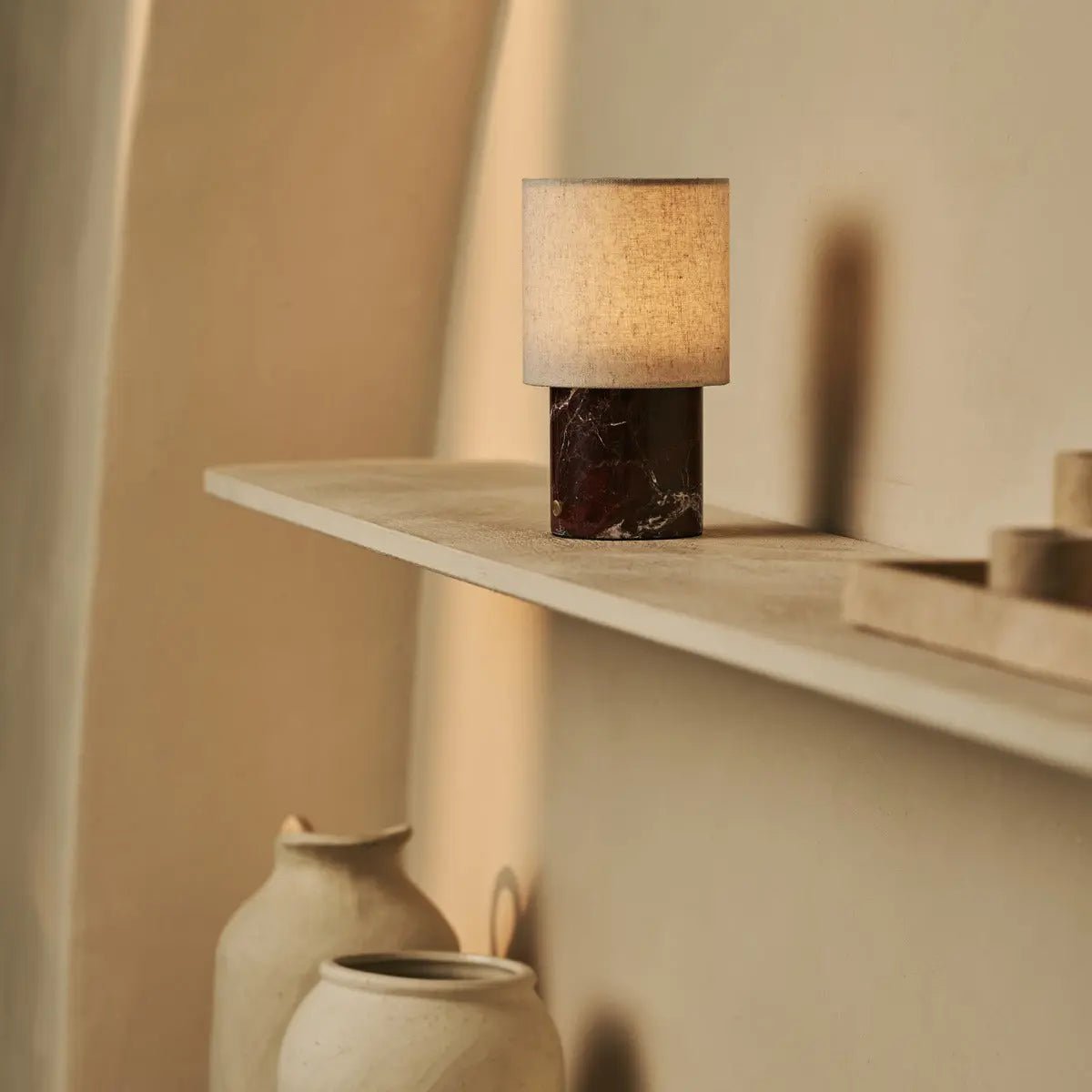 Ob im Wohnzimmer, Büro oder Schlafzimmer, die Onoda verleiht jedem Raum mit ihrem roten Marmorsockel und Leinenlampenschirm einen eleganten, luxuriösen Akzent.