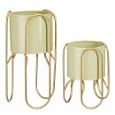 Dekoratives Metall 2er-Set Pflanzentöpfe in Hellgrün und Gold. Modern, stabil und perfekt zur stilvollen Präsentation von Zimmerpflanzen im Interieur.