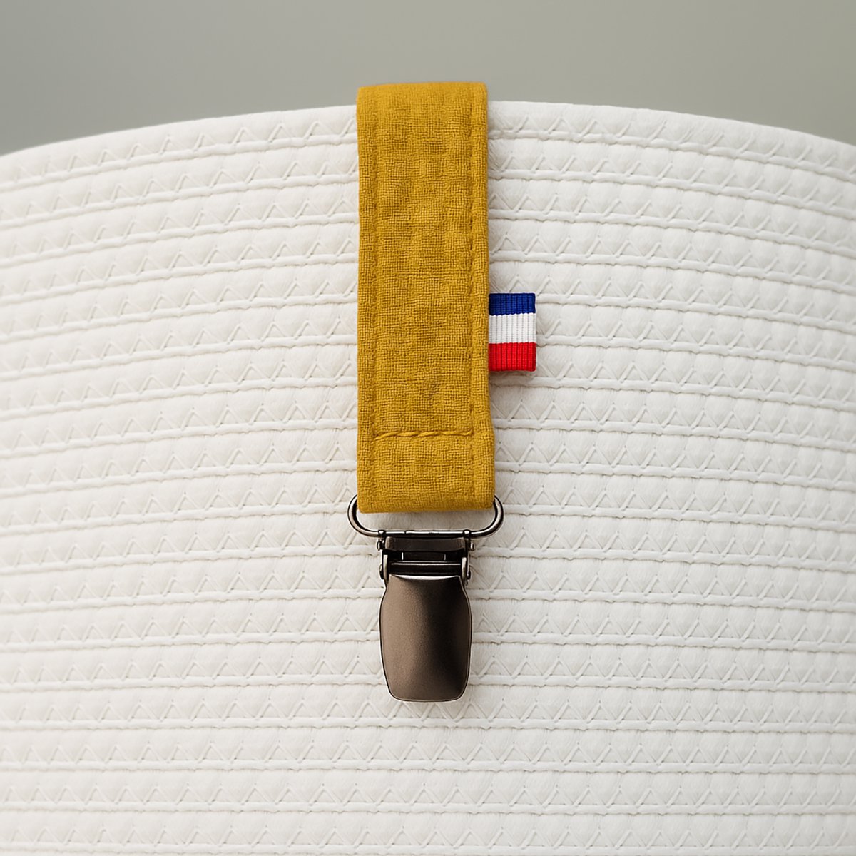 Beim Spaziergang oder zu Hause werden Sie den 100% Bio-Teddy-Schnullerclip nicht mehr missen wollen! So gut für den Planeten wie für unsere Kleinen, es hält den Schnuller Ihres Babys sauber, indem es verhindert, dass es auf den Boden fällt, und natürlich auch nicht verlegt wird! Der Teddy-Schnullerclip aus doppelter Bio Honey-Baumwollgaze wird in Frankreich hergestellt und mit einem sicheren Clip an der Kleidung des Babys befestigt.