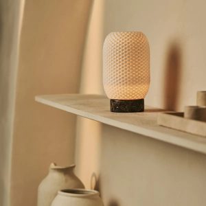 Tavellio | Designer-Tischlampe Maes – Grüner Marmor, kabellos & dimmbar