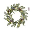 Er ist mit grünen Tannenzweigen, Tannenzapfen und Blaubeeren geschmückt und verfügt über 15 warmweiße LED-Leuchten, die für eine gemütliche, weihnachtliche Atmosphäre sorgen.