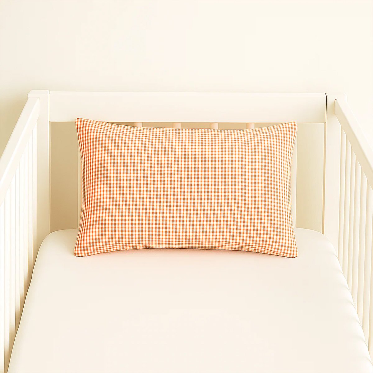 Der PaPate Kissenbezug ist unentbehrlich für den Schutz des Babykissens und ermöglicht es dem Baby, seinen kleinen Kopf auf einer weichen und bequemen Oberfläche zu ruhen. Unser Kissenbezug besteht aus 100% Bio-Popeline und Gingham, damit Ihr Baby in einer Wolke aus Weichheit friedlich einschlafen kann. Dekoratives Element für das Zimmer Ihrer Kleinen, PaPate hat den Kissenbezug mit 2 Seiten versehen: eine Seite aus weißem Popeline und die andere Seite aus einem orange-weißen Karomuster.