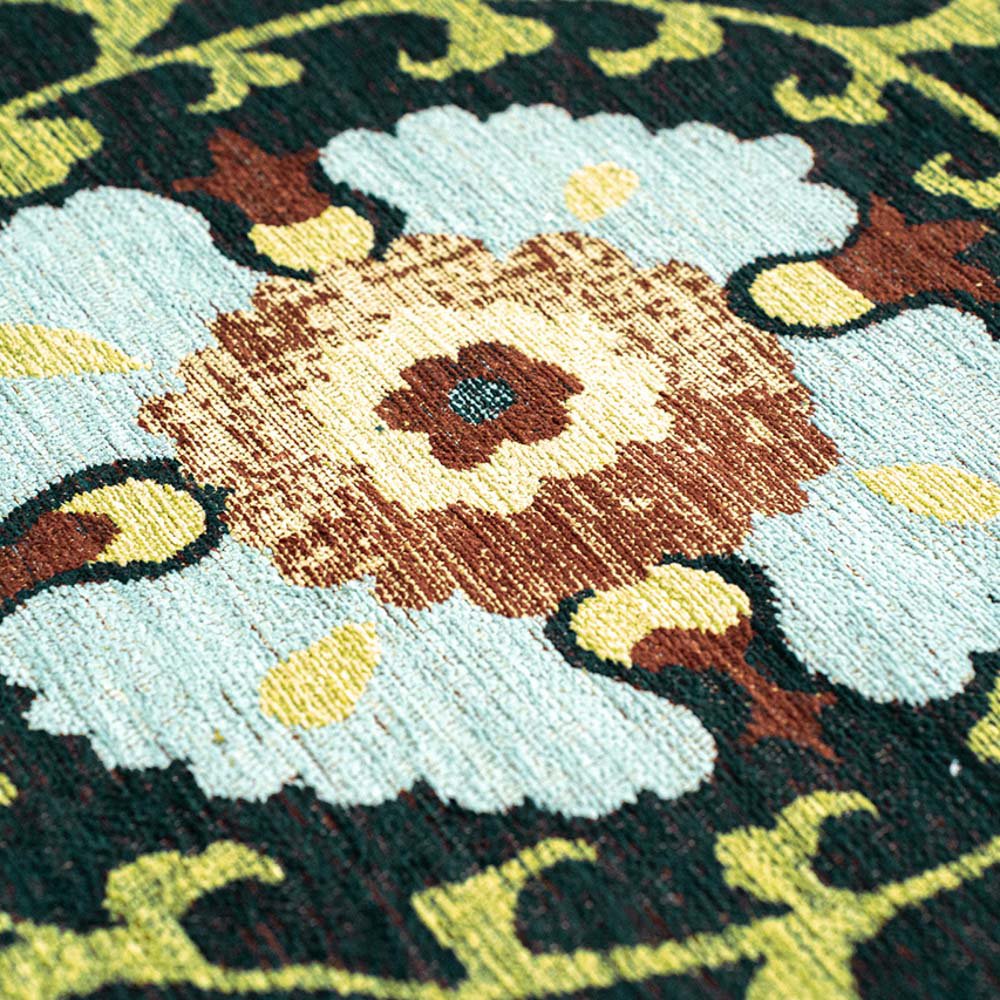 Die Kombination aus traditionellen Motiven und moderner Gestaltung sorgt für eine ausdrucksstarke und zugleich elegante Wirkung. Gefertigt aus hochwertigem Polyester, überzeugt der Teppich durch seine Strapazierfähigkeit, Pflegeleichtigkeit und Langlebigkeit – ideal für den täglichen Gebrauch in modernen Wohnräumen.