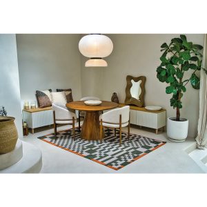 Dieser Teppich verbindet die ruhige Ästhetik eines Zen-Gartens mit moderner, spielerischer Geometrie. Klare Formen und harmonische Farbnuancen schaffen ein ausgewogenes Design, das Ihrem Wohnraum Ruhe und Struktur verleiht. Die weiche, strapazierfähige Oberfläche aus hochwertiger Kunstfaser sorgt für angenehmen Komfort und eignet sich ideal für den täglichen Gebrauch.