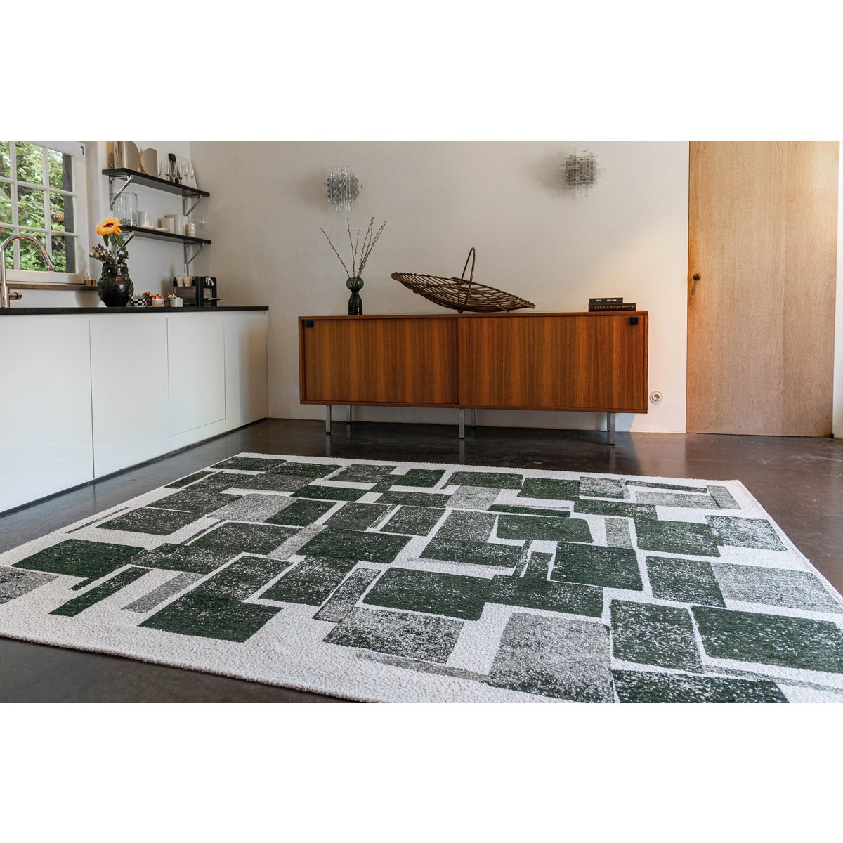 Dieser Teppich kombiniert Retro-Charme mit moderner, künstlerischer Gestaltung. Inspiriert von geometrischen Formen und kubistischen Einflüssen entsteht ein dynamisches Design mit spannender Struktur. Die weiche, strapazierfähige Oberfläche aus hochwertiger Kunstfaser sorgt für angenehmen Komfort und macht den Teppich ideal für den täglichen Gebrauch.